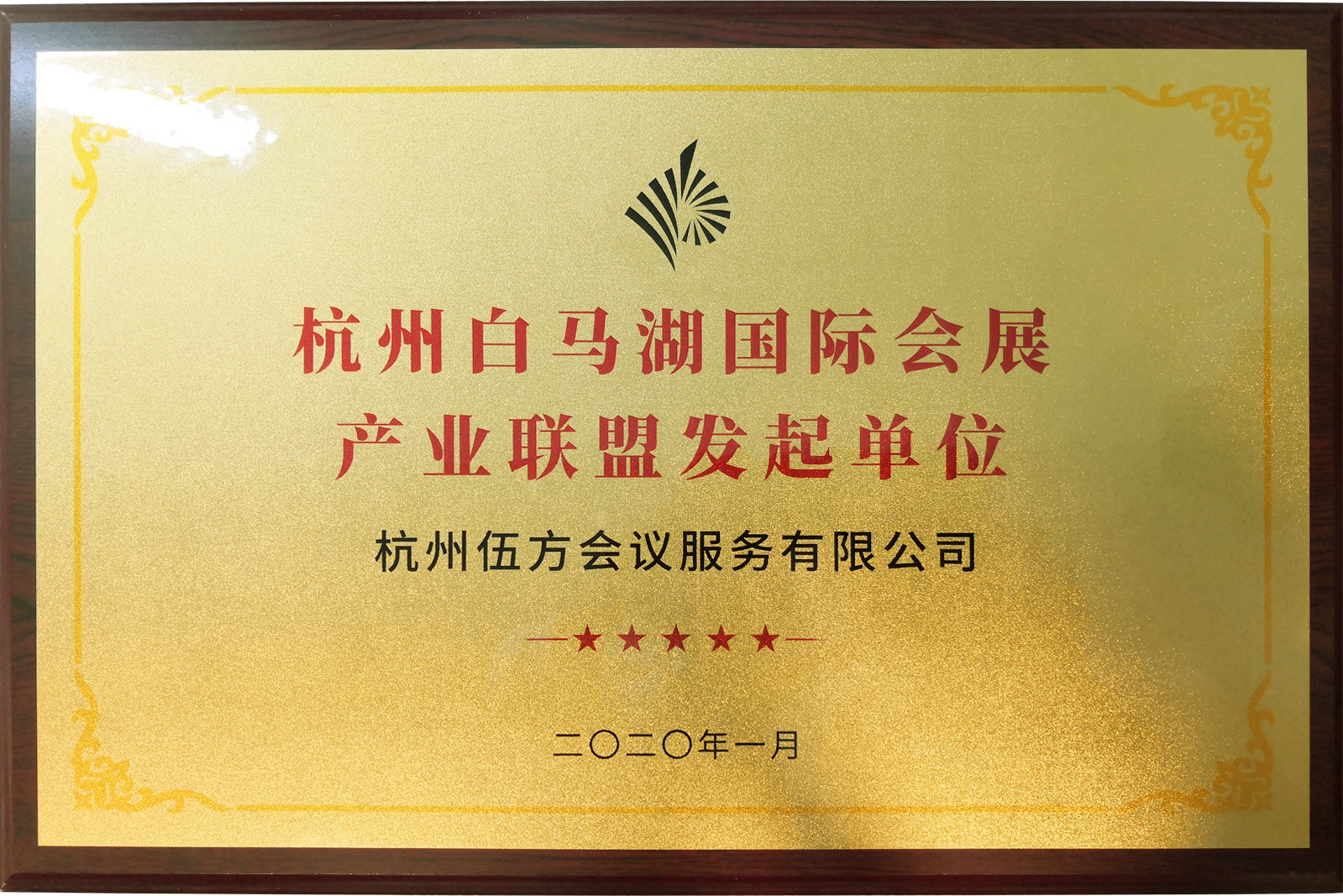 2020年1月17日,杭州白馬湖國際會展中心品牌發(fā)布會暨白馬湖國際會展產(chǎn)業(yè)聯(lián)盟成立儀式在白馬湖國際會展中心舉行,儀式上杭州白馬湖國際會展產(chǎn)業(yè)聯(lián)盟為聯(lián)盟發(fā)起單位杭州伍方會議服務(wù)有限公司等授牌。